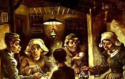 When Van Gogh described these paintings of the peasants, he stated that he was painting them in their ‘natural’ state. Clearly, to me, the strokes are exaggerated, distorted, and harshly done. This may have been the onset of the mental health anguish and expression of how sadly he must have felt for the people and their way of life. Perhaps, he saw himself slipping into their predicament and lost his footstep of where he was going.